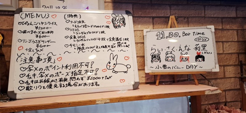 バータイム、オープンしました! 本日は らい(@Laychan_doll) さく(@saku_cafedoll) えな(@ena_cafedoll) 莉里(ゲスト) がお待ちしています🐰 小雪のバニーDAY! みんなのかわいらしいうさぎ姿をぜひ見に来てください🙇‍♀️❤ https://t.co/ytyxK1J5yz