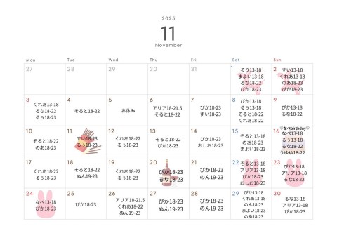 ❤️11月シフト❤️