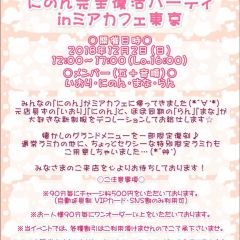 | 営業時間 | 12:00〜22:00(最終受付21:20) 定休日 不定休 深夜営業については、公式ページ右上の深夜営業日案内を ご覧ください(金曜・土曜日を中心に深夜営業予定)。 深夜営業対象日 22:00〜翌朝5:00(最終受付 翌朝4:20) http://market.chu.jp/schedule1/sche37.cgi ミアグループ総合スケジュール(PC&スマホ) http://market.chu.jp/schedule1/sche37.cgi?dm=1 ミアグループ総合スケジュール(ガラケー) 告知日のみ営業となります。告知日以外は深夜営業いたしておりません。 | ||||||||||||||