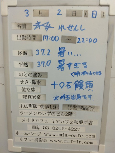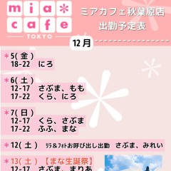 | 営業時間 | 12:00〜22:00(最終受付21:20) 定休日 不定休 深夜営業については、公式ページ右上の深夜営業日案内を ご覧ください(金曜・土曜日を中心に深夜営業予定)。 深夜営業対象日 22:00〜翌朝5:00(最終受付 翌朝4:20) http://market.chu.jp/schedule1/sche37.cgi ミアグループ総合スケジュール(PC&スマホ) http://market.chu.jp/schedule1/sche37.cgi?dm=1 ミアグループ総合スケジュール(ガラケー) 告知日のみ営業となります。告知日以外は深夜営業いたしておりません。 | ||||||||||||||