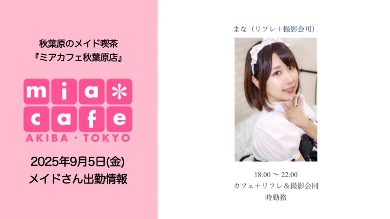 👑本日9月5日(金)のミアカフェ秋葉原店