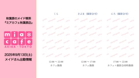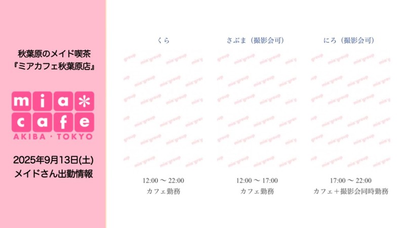👑本日9月13日(土)のミアカフェ秋葉原店