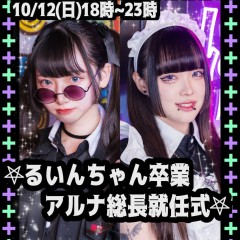 【本日✨】2025年10月12日(日) 『るいんちゃん卒業&アルナ総長就任式🌸✨️』 ⌚時間 18時~23時 🎟チャージ ¥1,100 キャスト👯‍♀️ るいん・アルナ・律・ユリカ https://t.co/dZL975gRsi