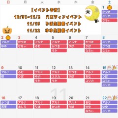 #Bar黒月 11月お給仕予定表🐈‍⬛ 【イベント予定】 1日(土)ハロウィンイベ🎃 2日(日)ハロウィンイベ🎃 15日(土)りぽ生誕祭🎀🍥 22日(土)ゆゆ生誕祭🍙🎀 11月より営業時間に一部変更があります。 詳しくは下記確認ください💫 営業時間 ❤️19時~23時 💜18時~23時 金・土・祝前日 https://t.co/gYvA6cP4C4
