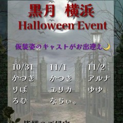 🦇【イベント予定】👻 10/31〜11/2は黒月ハロウィンイベント🎃 今年のハロウィンは3日間! いつもと違うキャスト達にぜひ会いに来てください🐈‍⬛ 10/31 かつき・りぽ・ろむ(19時半~) 11/1 かつき・ユリカ・なちぃ(19時~) 11/2 アルナ・ゆゆ ⚠️1日、2日は営業時間異なります https://t.co/oCC7r171Ga