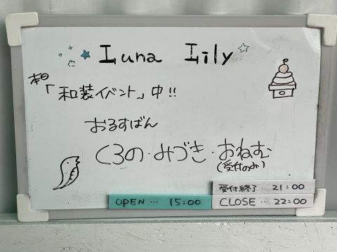 | 営業時間 | 平 日 15:00〜22:00 土日祝 14:00〜22:00 または 13:00~21:00 (21時または20時受付終了) | ||||||||||||||