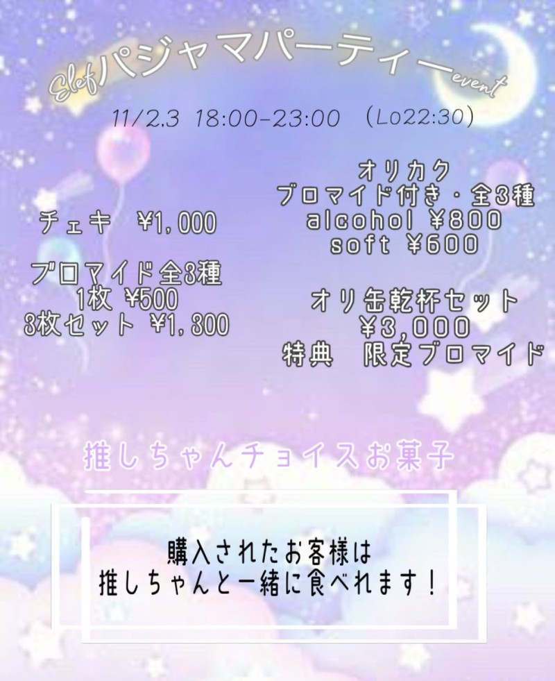 | å¶æ¥æé | ããŒã¿ã€ã (å¹³æ¥) 18:00ã23:30 ãã€ãã¿ã€ã (éã»åã»ç¥å) 23:30ã5:00 å®äŒæ¥æ¯æ15æ¥ ã€ãã³ãäŒå Žã«ãŠäž»å¬ã®å ŽåäŒæ¥ããå ŽåãããããŸãã | ||||||||||||||