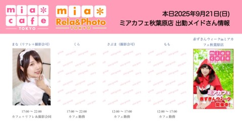 👑本日9月21日(日)のミアカフェ秋葉原店