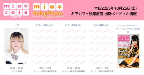 👑本日10月25日(土)のミアカフェ秋葉原店