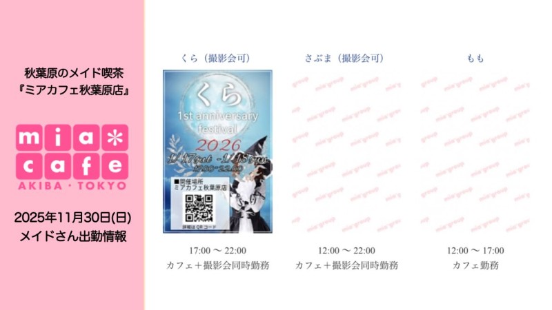👑本日11月30日(日)のミアカフェ秋葉原店