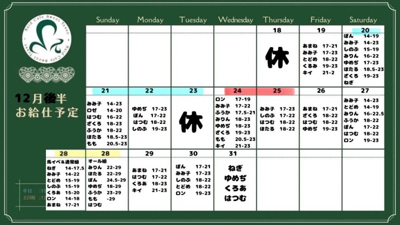12月後半のお給仕予定です!ᝰ✍🏻𖤐