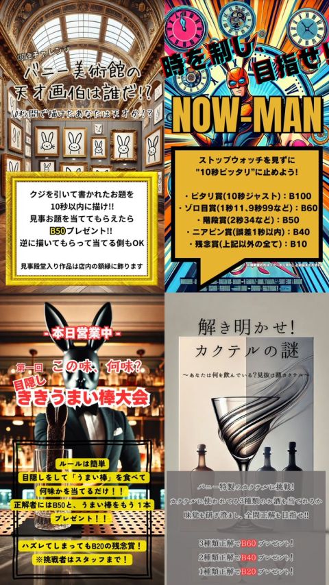 | 営業時間 | 営業時間:20:30から翌3:00 | ||||||||||||||