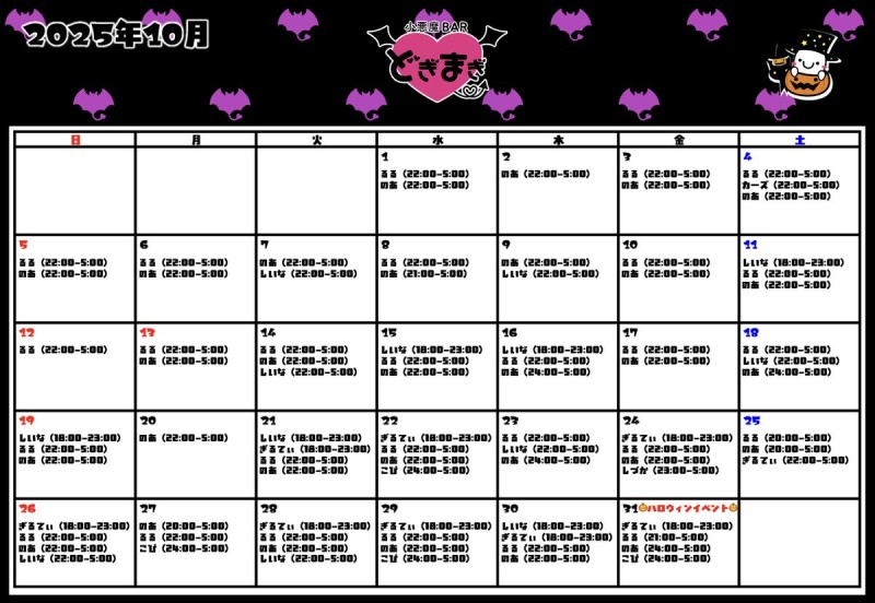 | 営業時間 | 18:00-5:00 | ||||||||||||||