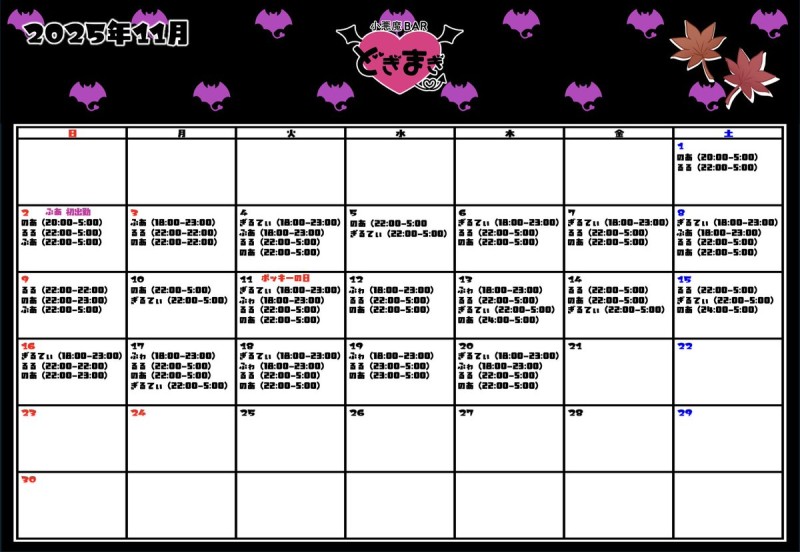 | 営業時間 | 18:00-5:00 | ||||||||||||||