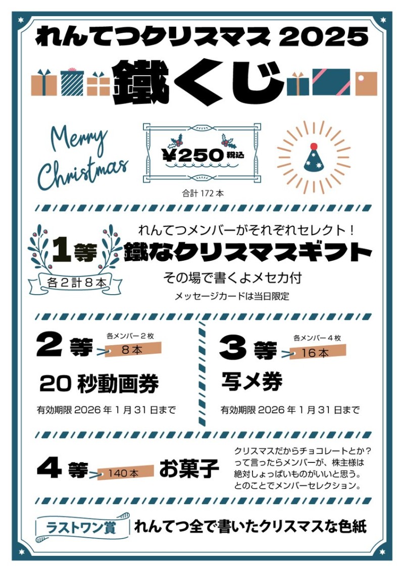 䞊蚘日皋は物販でクリスマスくじ¥250販売いたしたす。 https://t.co/gDaLnM1Yrf