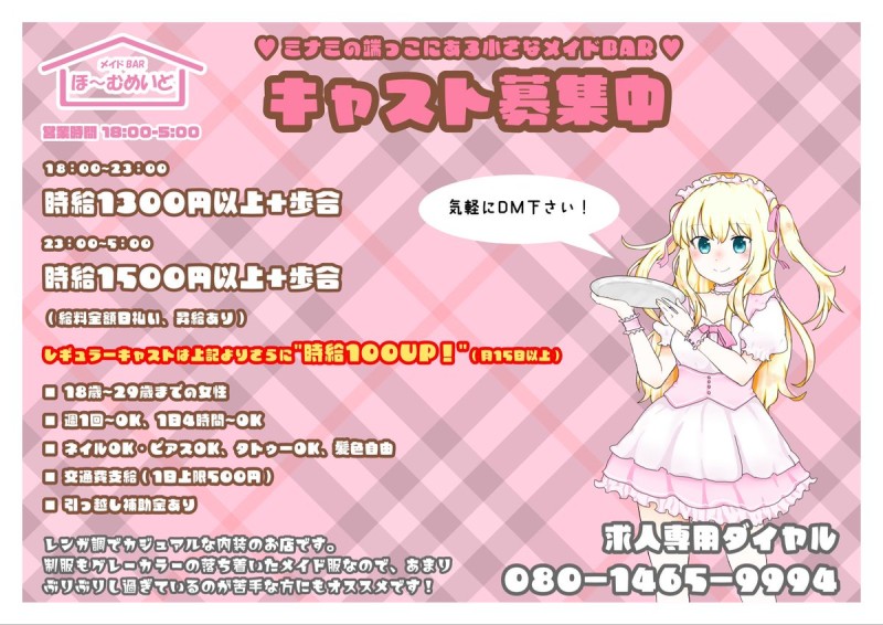 メイドカフェでGO!では情報提供(無料)を募集しております。