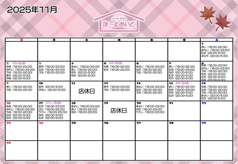 | 営業時間 | 18:00-5:00 | ||||||||||||||