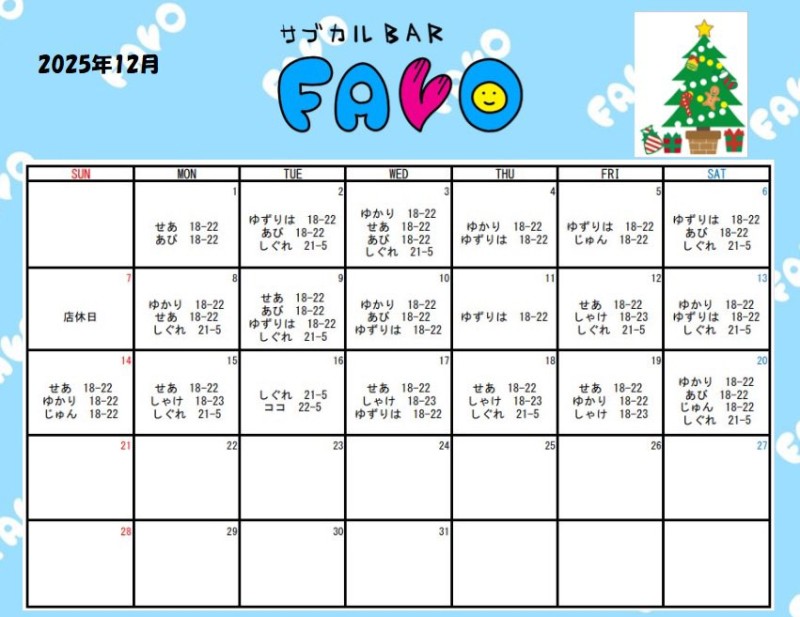 🎀12月のシフト更新🎀