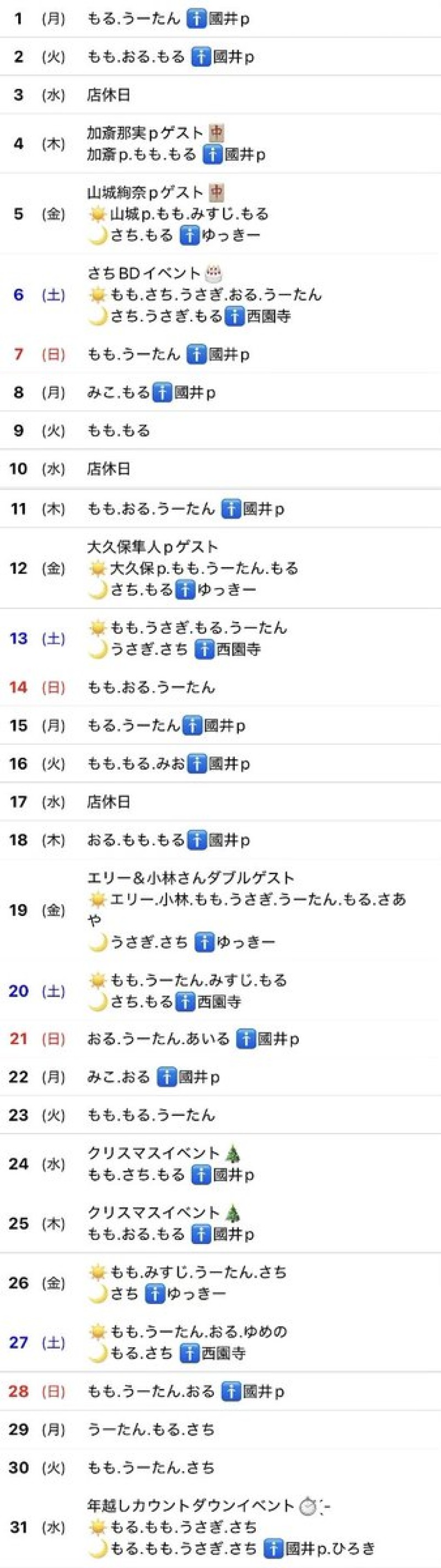 🎅🏻12月シフト表🎄