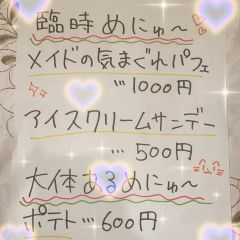 臨時メニューです! パフェを頼んだ方は特別に、 チェキ1枚100円off or ドリンクプレゼント1杯50円off となります♪ぜひお楽しみください♡ #グラヴィーテ #浜松 #メイド喫茶 #メイドカフェ #コンカフェ #豊橋 https://t.co/G5vp6rAA7Q