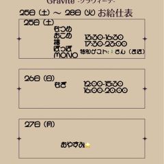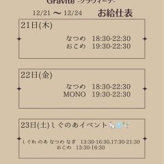 今週末のお給仕予定です❕ 今週はしぐのあイベントとクリスマスイベント!楽しい週末になりそうですね💕 ご帰宅お待ちしております🏠 #グラヴィーテ #メイドカフェ #メイド喫茶 #コンカフェ #浜松 #豊橋 https://t.co/j5mgFyZ2Ww