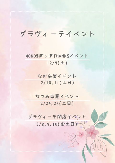 閉店まで残り少なくなってきましたが、これからもグラヴィーテをよろしくお願いします✨✨
