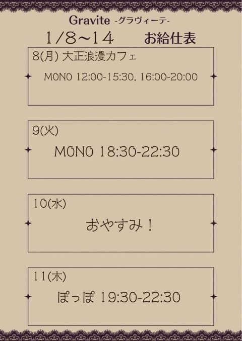 🚨日によってOPENの時間が異なりますのでご注意ください