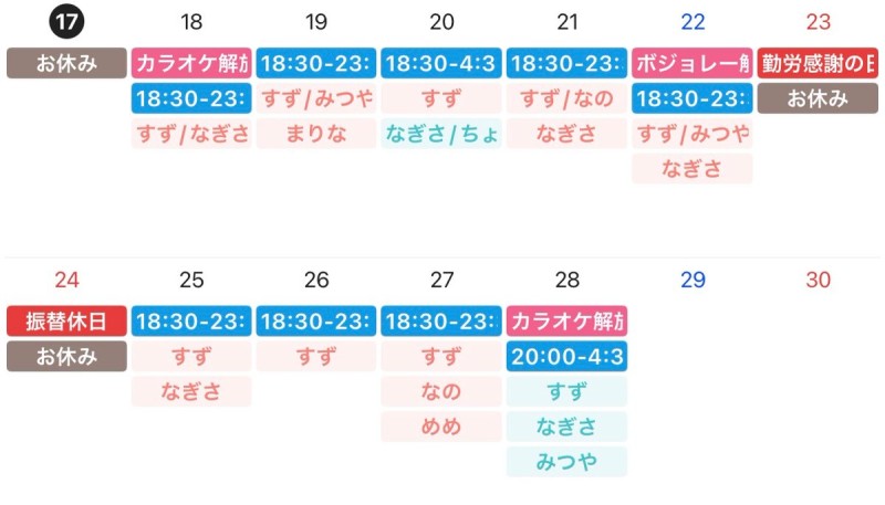 ◽︎11/18(火)…カラオケ解放デー🎤🎶