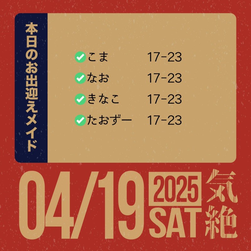 | 営業時間 | 18:00〜 | ||||||||||||||