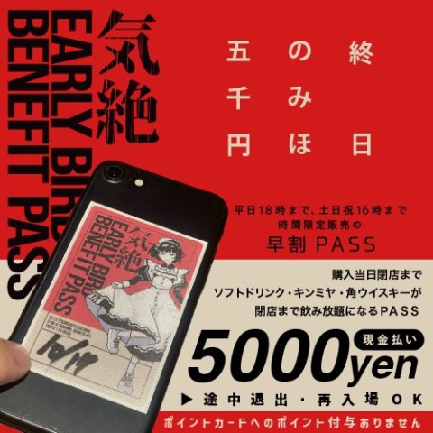 5000円で閉店まで飲み放題になるので是非ご利用ください!