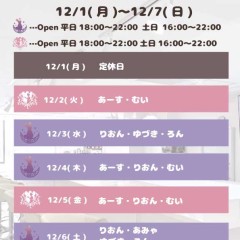 | 営業時間 | *火曜日~金曜日*18:00~23:00 *土曜日、日曜日*16:00~23:00 *月曜日、木曜日*定休日 (イベントなどで営業時間が変わることがあります。) | ||||||||||||||