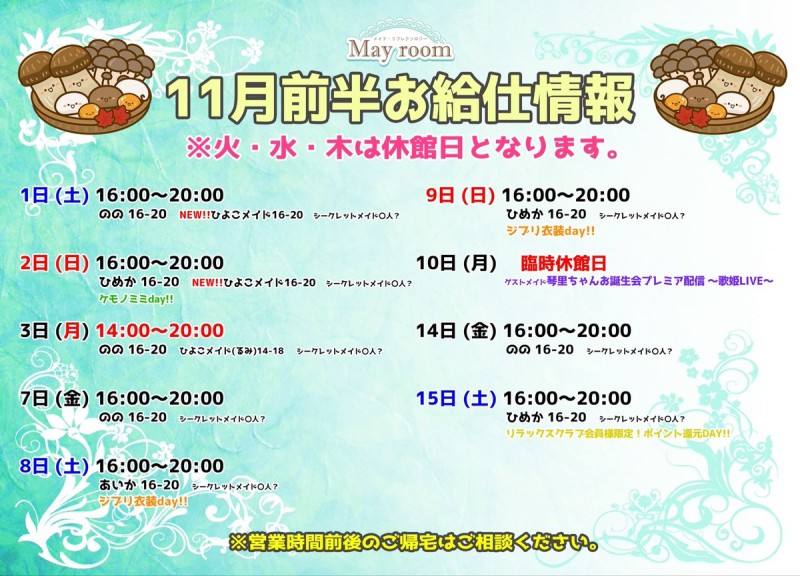 âšïž2025/11/1ïœ11/15 å¶æ¥æ¥ïŒã¡ã€ããçµŠä»æ