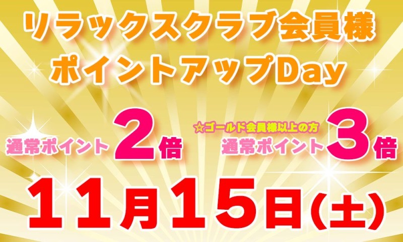 11æååã®ãªã©ãã¯ã¹äŒå¡æ§éåžžãã€ã³ãïŒåã»GOLDäŒå¡æ§ä»¥äžïŒådayã¯ã11æ15æ¥(å)ã§ãð¢