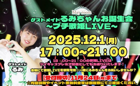 12/1(月) ゲストメむドるみちゃんお誕生䌚 プチ歌姫LIVE開催