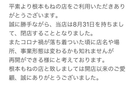 【根本もねの店閉店のお知らせ】 https://t.co/84PxwaZNhp