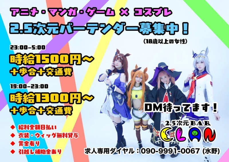🌜キャスト募集中🌛 🍸23:00-5:00 → 時給1500円以上+歩合 🍸19:00-23:00 → 時給1300円以上+歩合 ⭐️交通費支給 ⭐️衣装無料貸与 ⭐️給料全額日払い 気軽にDM下さい📩 #コンカフェ #求人 #日払い #バイト #ミナミ #難波 #心斎橋 #大阪 #バー #コスプレ #アニメ #ゲーム #漫画 #レイヤー https://t.co/MRYq7Z0NAa