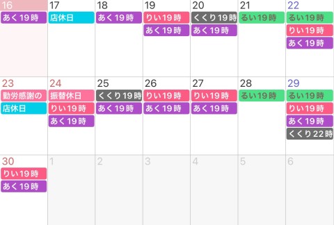 | 営業時間 | 18:00~23:00 金土・祝前日は深夜営業する場合有り | ||||||||||||||