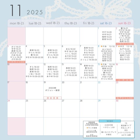 🎀11月前半お給仕予定🎀