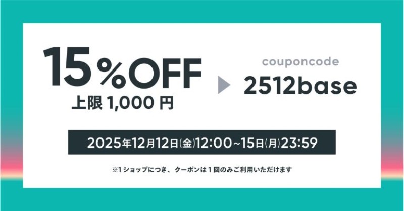 【12/1215限定】15%OFFクヌポンプレれント#BASE感謝祭 https://t.co/fgVZuOb3z8