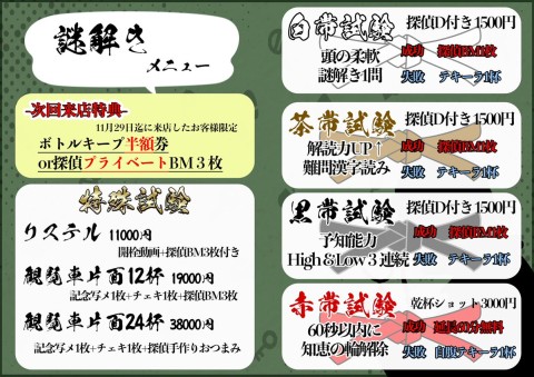 | 営業時間 | 月曜日〜土曜日 18:00〜翌4:30 定休日:日曜日 | ||||||||||||||