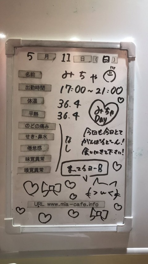 | 営業時間 | 静岡店は出勤スタッフがいれば営業です! 基本的に 12時~22時が営業時間です! ●静岡店のツイッター @shizuokamaidsan https://twitter.com/shizuokamaidsan ●ミア静岡店の営業曜日&営業時間● ☆月〜木 14:00〜22:00(最終受付20:00) ☆金曜日 12:00〜22:00(最終受付21:00) ☆土・日・祝 12:00〜22:00(最終受付21:00) 営業時間外はオンライン予約にてお願いいたします。 PC・携帯共通 → http://m-kanzume.moo.jp/yoyaku2/user.cgi ●ミアガイド出勤状況● スマホ・PC → 後日公開予定 ★静岡店スタッフによるミア甲府店でのメイドカフェリアル営業★ ☆不定期 サイトにてご確認ください。 http://market.chu.jp/schedule1/sche37.cgi | ||||||||||||||