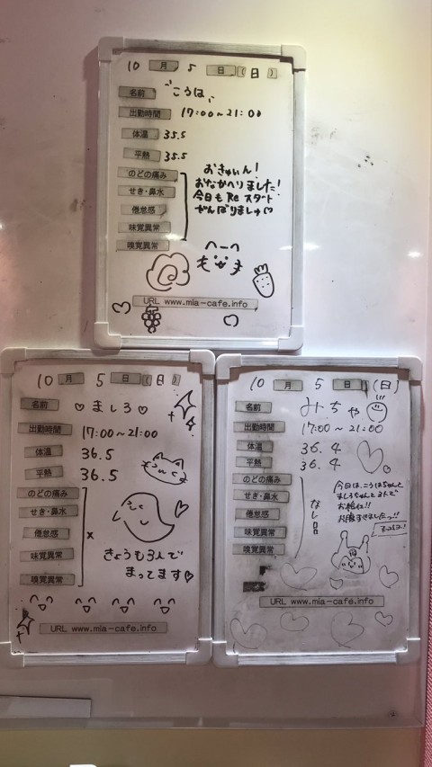 | 営業時間 | 静岡店は出勤スタッフがいれば営業です! 基本的に 12時~22時が営業時間です! ●静岡店のツイッター @shizuokamaidsan https://twitter.com/shizuokamaidsan ●ミア静岡店の営業曜日&営業時間● ☆月〜木 14:00〜22:00(最終受付20:00) ☆金曜日 12:00〜22:00(最終受付21:00) ☆土・日・祝 12:00〜22:00(最終受付21:00) 営業時間外はオンライン予約にてお願いいたします。 PC・携帯共通 → http://m-kanzume.moo.jp/yoyaku2/user.cgi ●ミアガイド出勤状況● スマホ・PC → 後日公開予定 ★静岡店スタッフによるミア甲府店でのメイドカフェリアル営業★ ☆不定期 サイトにてご確認ください。 http://market.chu.jp/schedule1/sche37.cgi | ||||||||||||||