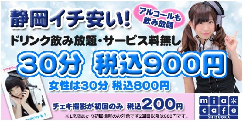 | 営業時間 | 静岡店は出勤スタッフがいれば営業です! 基本的に 12時~22時が営業時間です! ●静岡店のツイッター @shizuokamaidsan https://twitter.com/shizuokamaidsan ●ミア静岡店の営業曜日&営業時間● ☆月〜木 14:00〜22:00(最終受付20:00) ☆金曜日 12:00〜22:00(最終受付21:00) ☆土・日・祝 12:00〜22:00(最終受付21:00) 営業時間外はオンライン予約にてお願いいたします。 PC・携帯共通 → http://m-kanzume.moo.jp/yoyaku2/user.cgi ●ミアガイド出勤状況● スマホ・PC → 後日公開予定 ★静岡店スタッフによるミア甲府店でのメイドカフェリアル営業★ ☆不定期 サイトにてご確認ください。 http://market.chu.jp/schedule1/sche37.cgi | ||||||||||||||