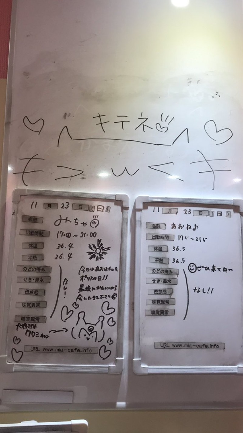 | 営業時間 | 静岡店は出勤スタッフがいれば営業です! 基本的に 12時~22時が営業時間です! ●静岡店のツイッター @shizuokamaidsan https://twitter.com/shizuokamaidsan ●ミア静岡店の営業曜日&営業時間● ☆月〜木 14:00〜22:00(最終受付20:00) ☆金曜日 12:00〜22:00(最終受付21:00) ☆土・日・祝 12:00〜22:00(最終受付21:00) 営業時間外はオンライン予約にてお願いいたします。 PC・携帯共通 → http://m-kanzume.moo.jp/yoyaku2/user.cgi ●ミアガイド出勤状況● スマホ・PC → 後日公開予定 ★静岡店スタッフによるミア甲府店でのメイドカフェリアル営業★ ☆不定期 サイトにてご確認ください。 http://market.chu.jp/schedule1/sche37.cgi | ||||||||||||||